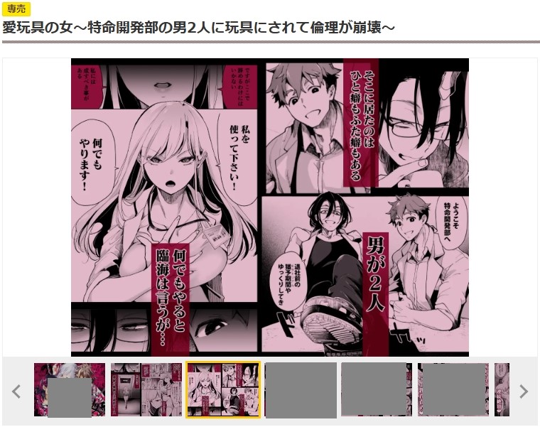 愛玩具の女~特命開発部の男2人に玩具にされて倫理が崩壊~をhitomiやrawで見るのは違法
