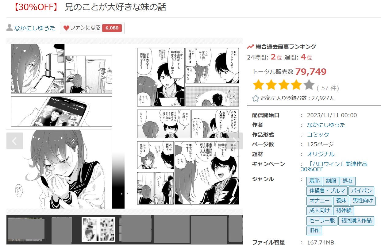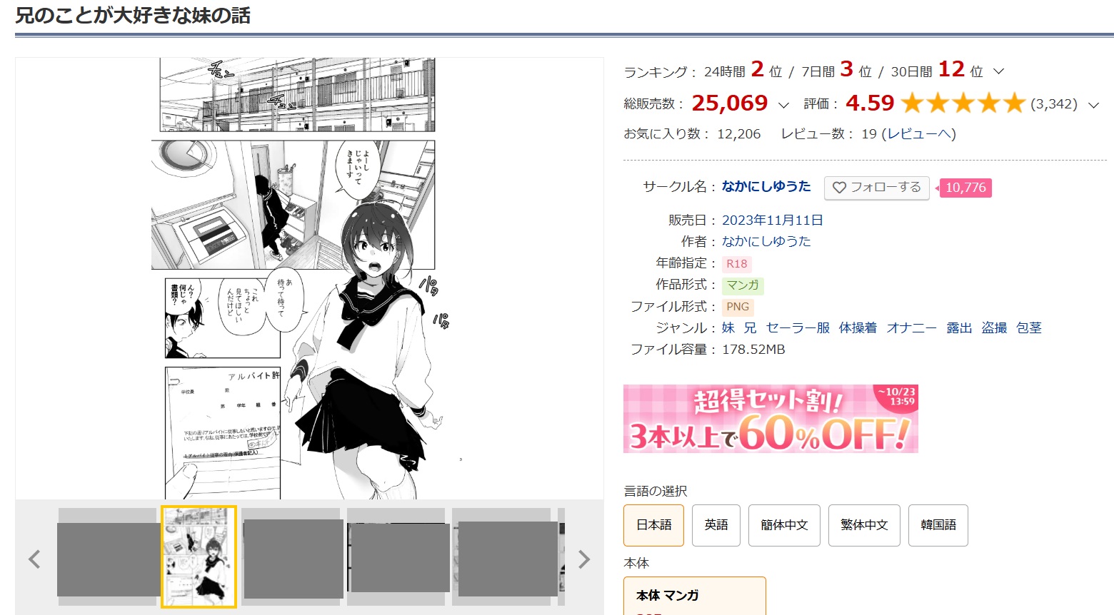 兄のことが大好きな妹の話はとても人気作品で、毎日多くの人が購入しています。