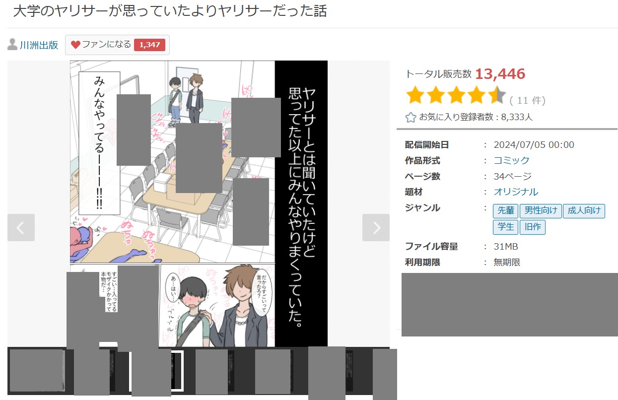 大学のヤリサーが思っていたよりヤリサーだった話はとても人気作品で、毎日多くの人が購入しています。