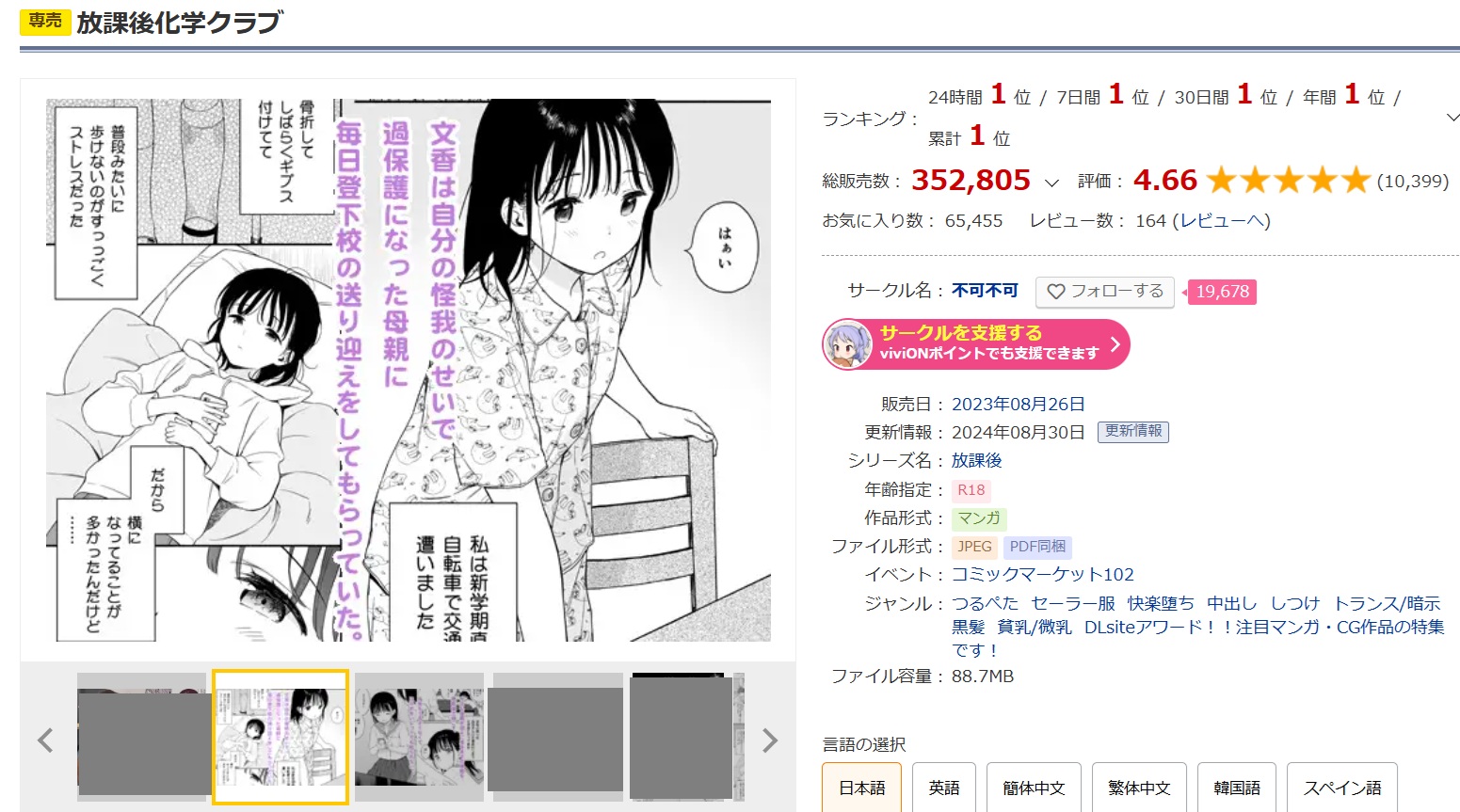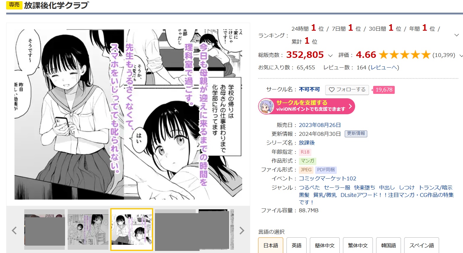 放課後化学クラブはとても人気作品で、毎日多くの人が購入しています。