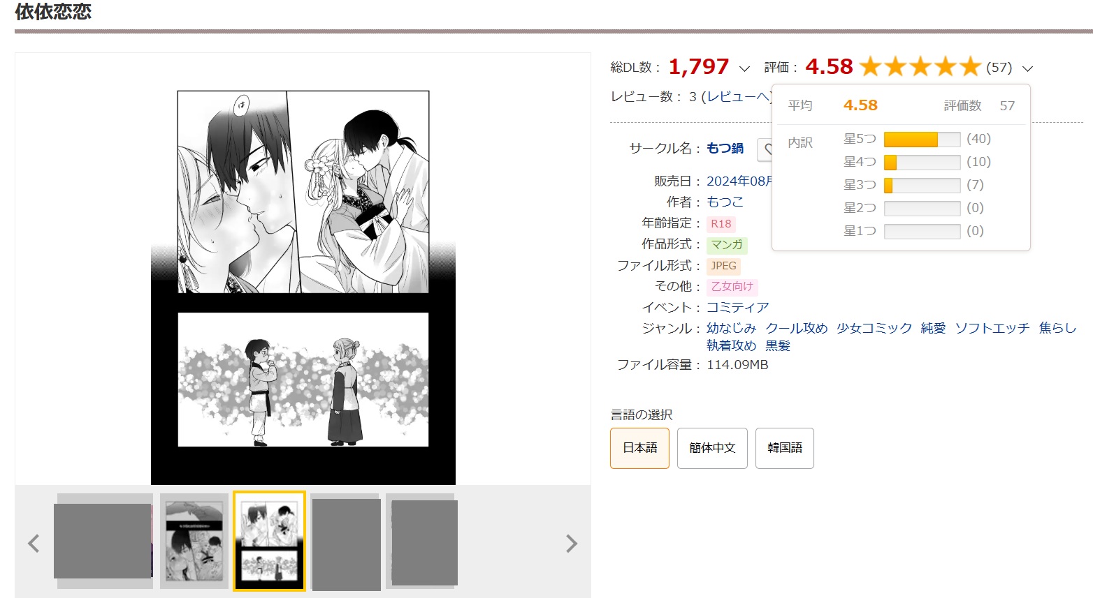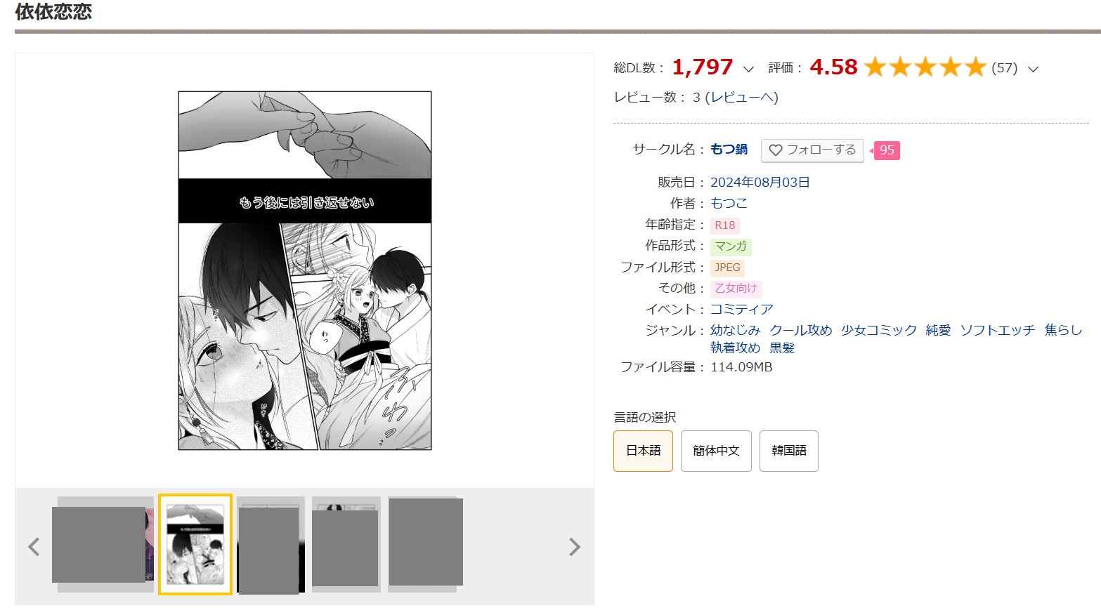 『依依恋恋』を購入するなら、DLsiteの利用が特におすすめです。