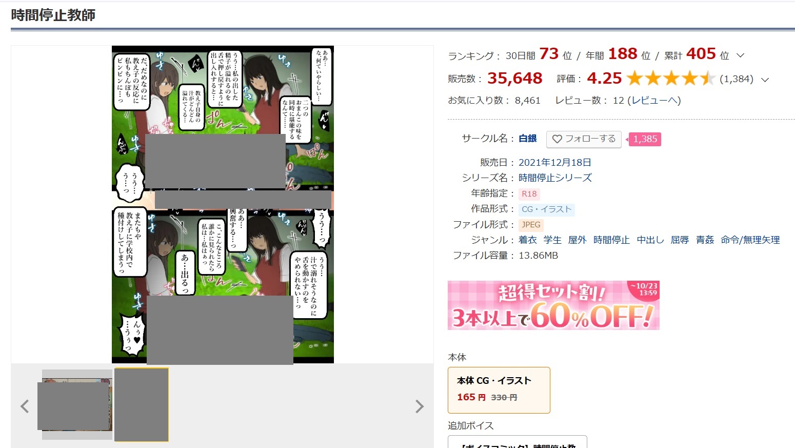 時間停止教師はとても人気作品で、毎日多くの人が購入しています。