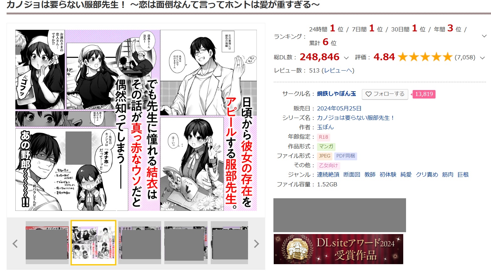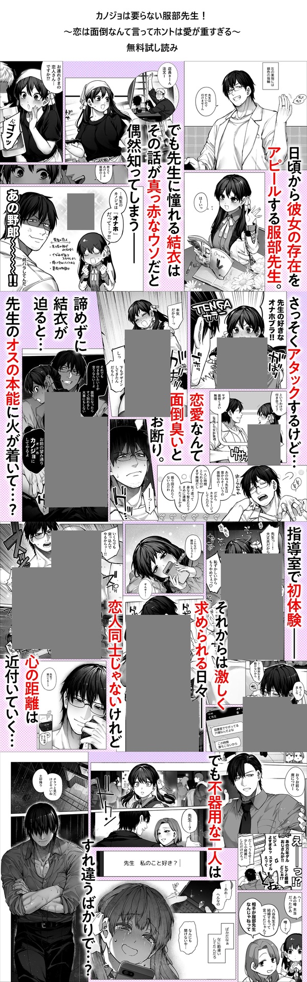 『カノジョは要らない服部先生! ~恋は面倒なんて言ってホントは愛が重すぎる~』のモザイク・黒塗りなしバージョンが公開中です。