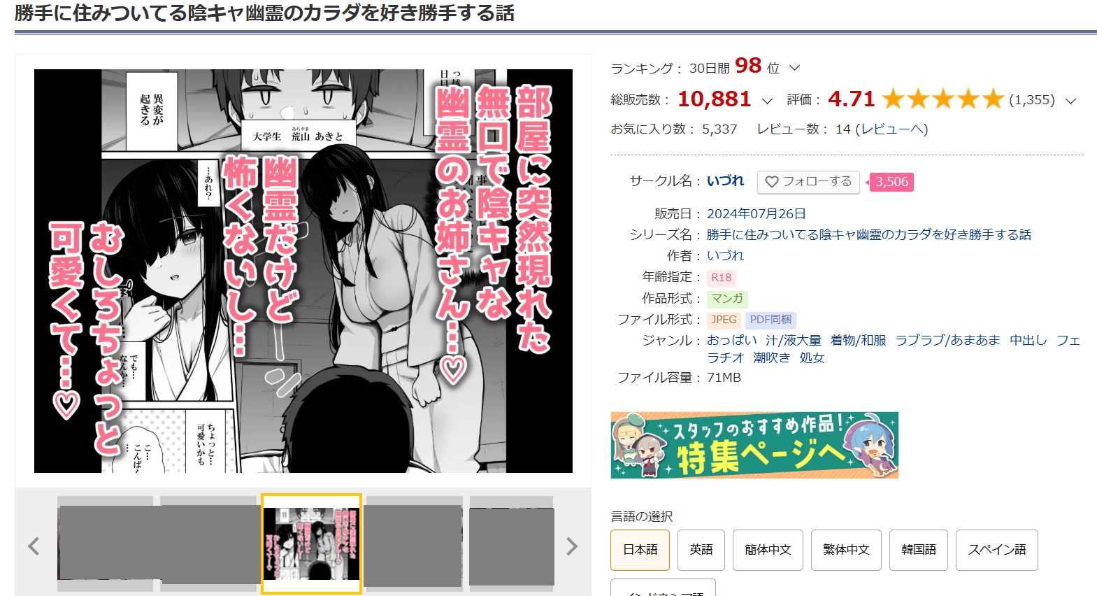 勝手に住みついてる陰キャ幽霊のカラダを好き勝手する話はとても人気作品で、毎日多くの人が購入しています。