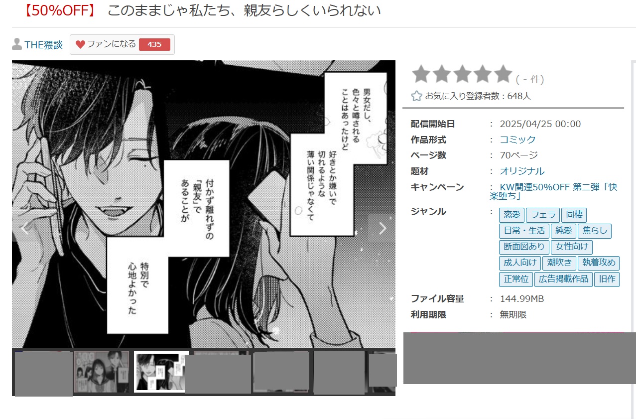 このままじゃ私たち、親友らしくいられないはとても人気作品で、毎日多くの人が購入しています。