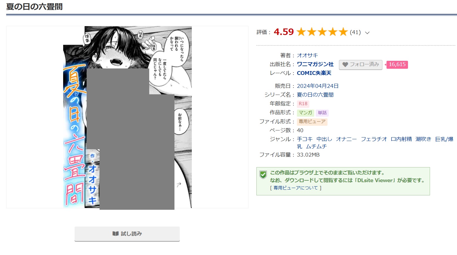 夏の日の六畳間をhitomiやrawで見るのは違法