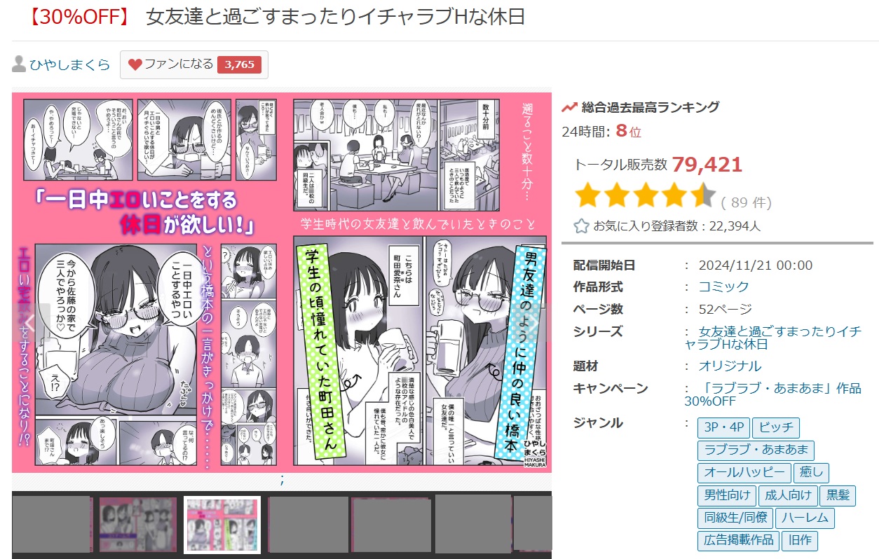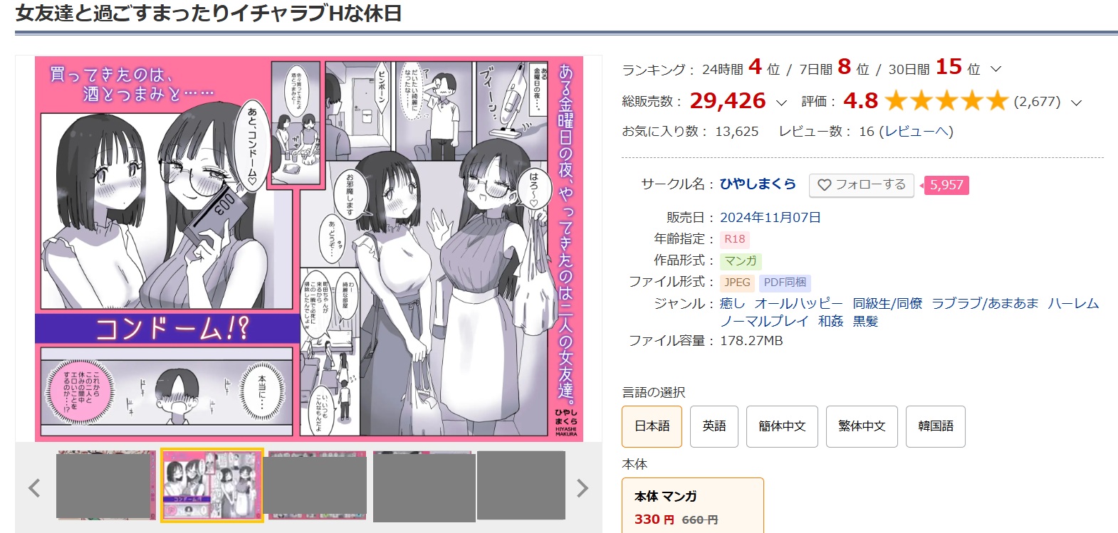 女友達と過ごすまったりイチャラブHな休日はとても人気作品で、毎日多くの人が購入しています。