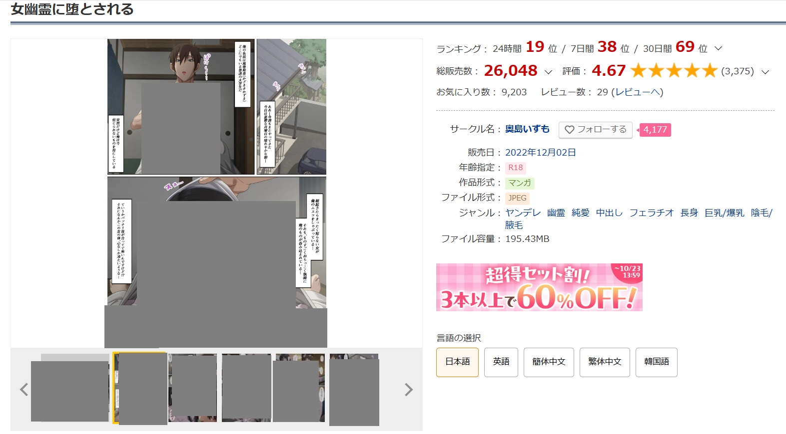 女幽霊に堕とされるはDLsiteが最安値!