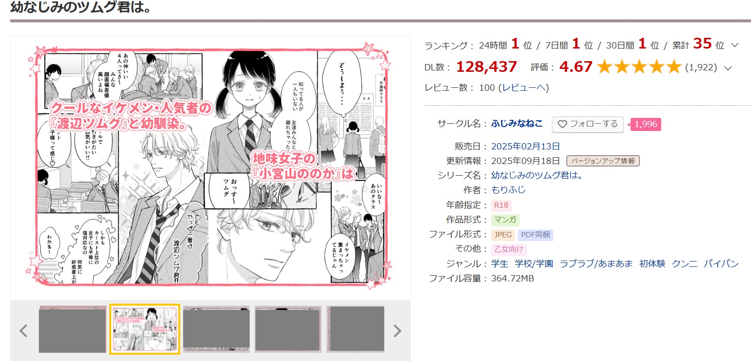 幼なじみのツムグ君は。はとても人気作品で、毎日多くの人が購入しています。