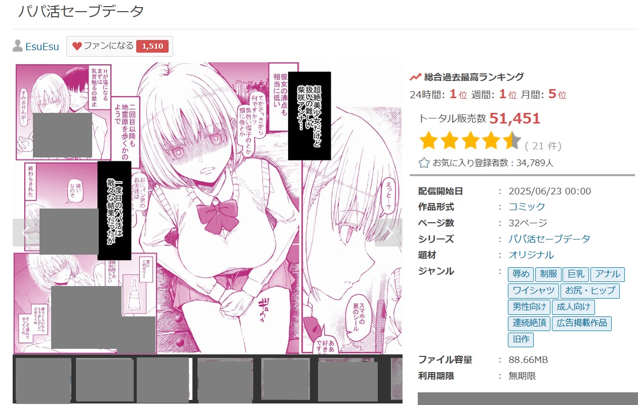 パパ活セーブデータはとても人気作品で、毎日多くの人が購入しています。
