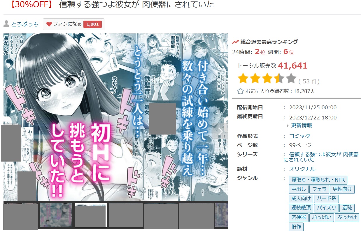 信頼する強つよ彼女が 肉便器にされていたはとても人気作品で、毎日多くの人が購入しています。
