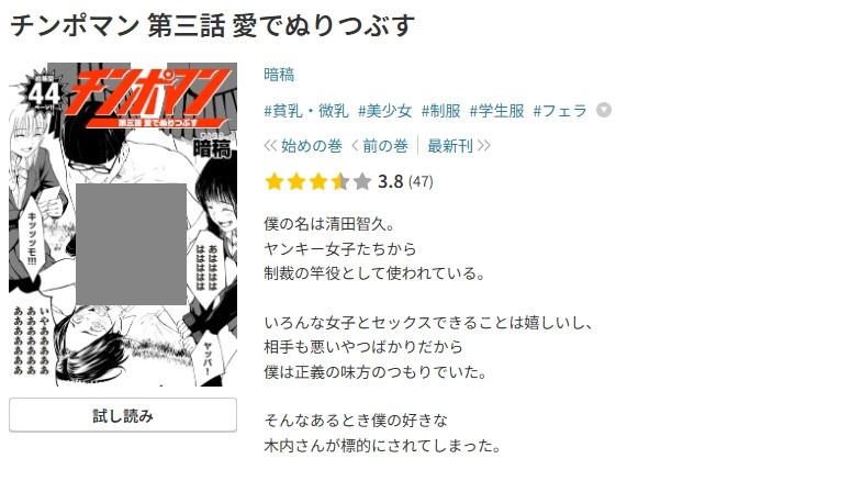 チンポマン 第三話 愛でぬりつぶすをどのサービスで読みましたか