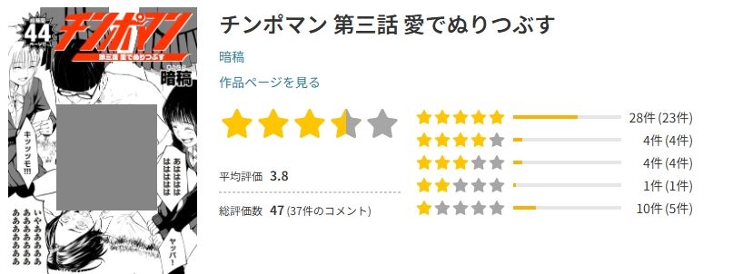 チンポマン 第三話 愛でぬりつぶすを読んだ読者の率直な感想を紹介します。