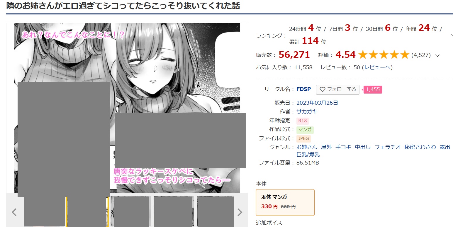『隣のお姉さんがエロ過ぎてシコってたらこっそり抜いてくれた話』をお得に手に入れるなら、DLsiteが断然おすすめです。