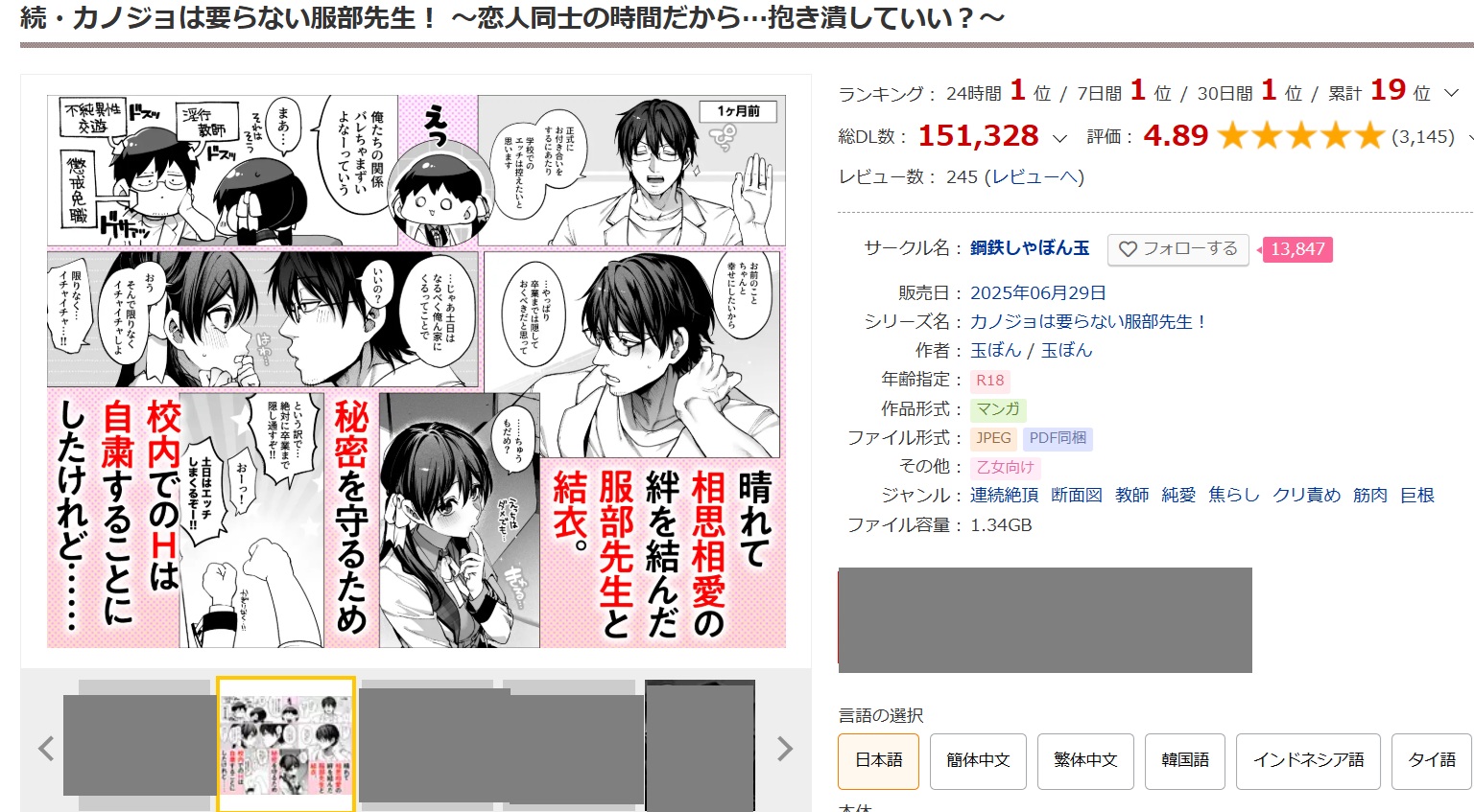 『続・カノジョは要らない服部先生! ~恋人同士の時間だから…抱き潰していい?~』もDLsiteで購入可能で、クーポンを使えば440円で手に入ります。