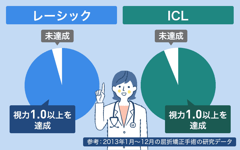 レーシックとICLは、どちらも1.0以上への視力回復が見込める手術です。