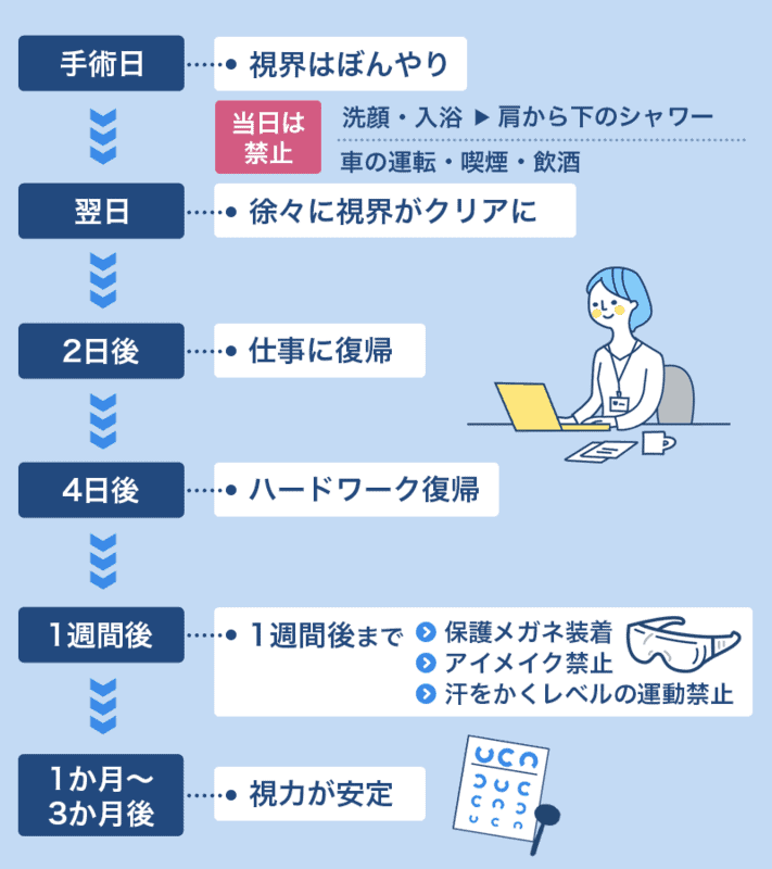 手術後には、目がゴロゴロするような違和感や乾燥、軽度の痛みを感じることがあります。