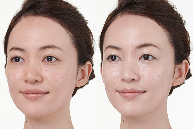 ワントーン明るくなり、ハイライト効果も生まれます。最後に、お手持ちのファンデーションやパウダーで仕上げるとトーンアップ効果で肌が明るく、つや感のある仕上がりなります。 くすみ等の肌悩みをカバーします。