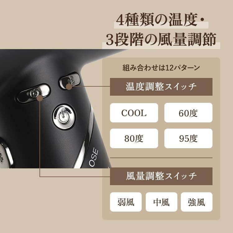 髪の長さや量、好みに合わせて調節できるので、毎日のヘアケアがより快適に、そして効率よく行えます。