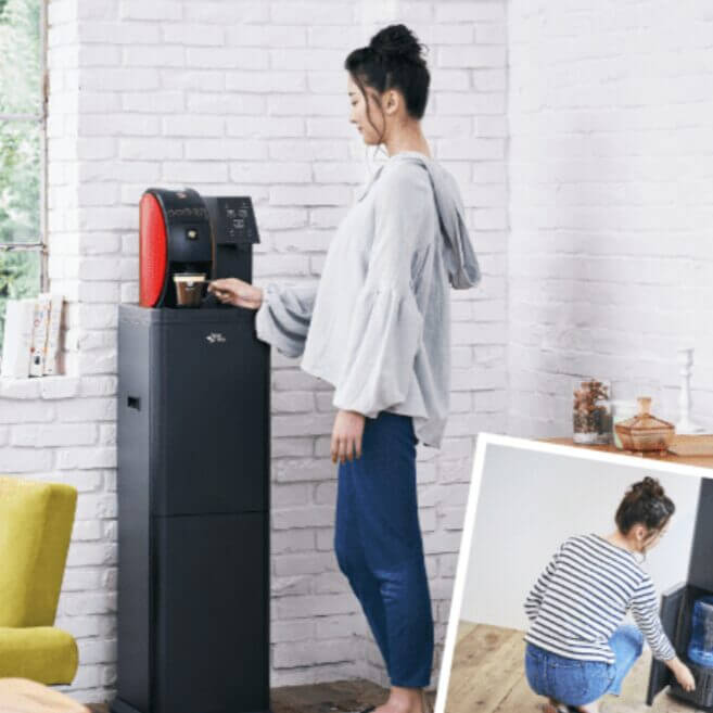 アクアクララではコーヒーマシン搭載のモデル「アクアウィズ」も人気です。