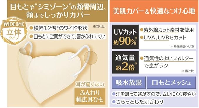 特に、紫外線が強い季節や長時間の外出時には、メイク下地で紫外線対策をした上に紫外線カットマスクを使えば、さらに対策を万全に。