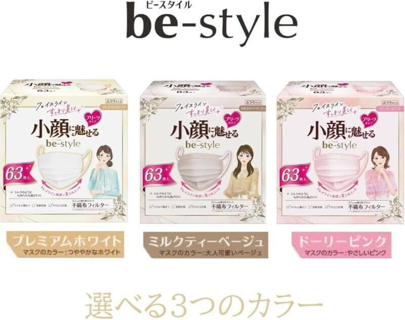 ビースタイルマスクは立体タイプとプリーツタイプ、UVカット機能付きの立体タイプがあります。