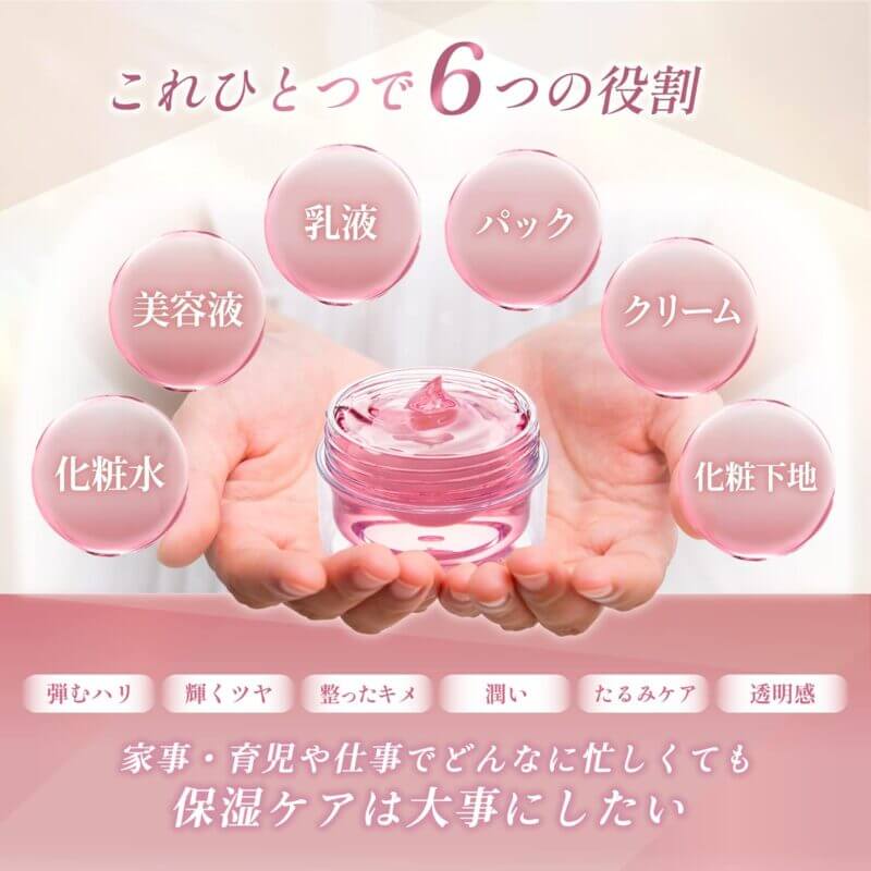 ダブル オールインワン ジェルクリームひとつで化粧水、乳液、パックなど6つの役割をにないます。