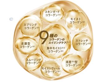 乾燥した肌に浸透※1しやすい「集中モイストコラーゲン※2」を含む9種類のコラーゲン※3を配合し、お肌の乾燥を徹底ケアします。