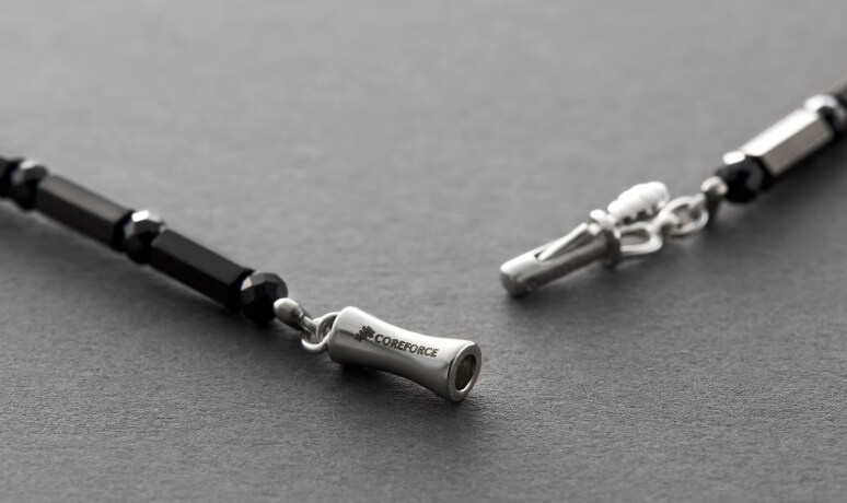 COREFORCEの商品は、ネックレスとして使用したり、手首や足首などへも装着することのできるアクセサリーとなっています。