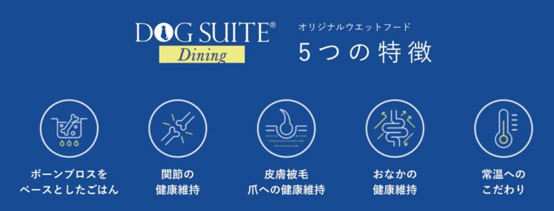 ドッグスイートのウエットフードは、栄養価の高いボーンブロスを使用しているのが特徴。