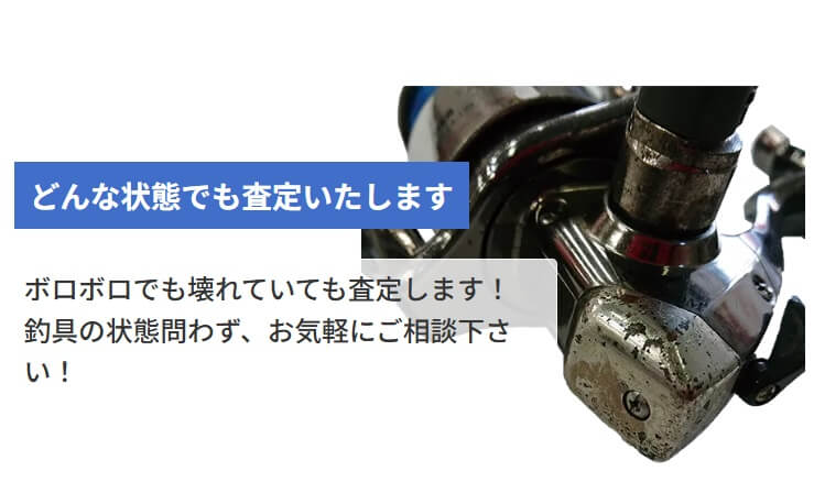 フィッシングコレクトは、故障品や傷物の釣具も買取対象としているため、状態が悪い釣具でも依頼OK