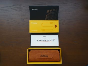 箱を開封するとHalliday AIグラスとメガネケース、メガネ拭き、説明書、タイプCコードが入っていました。
