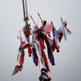 付属のダブルスペイザーと合体、更に台座と組み合わせて飛行状態を再現できます。