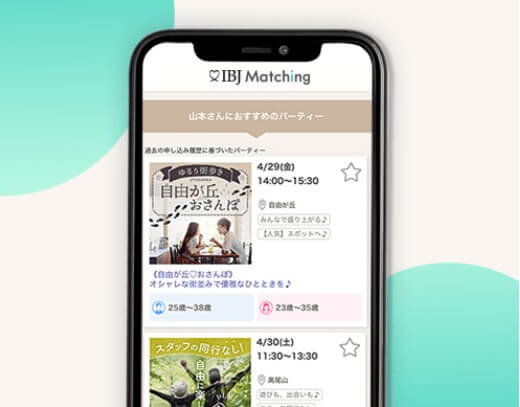 ibjアプリは、「まず会ってから相性を確かめたい」という方にぴったりの婚活・恋活サービス。