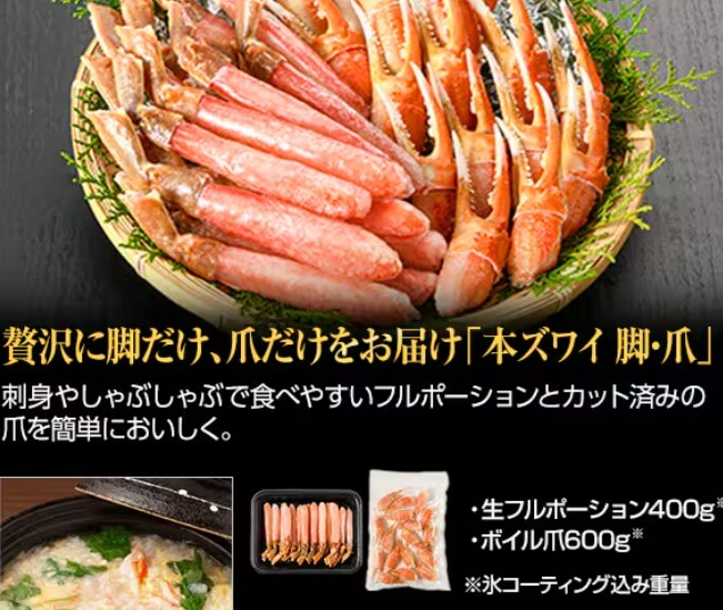 来月は近江牛(肩ロース300gと肩スライス300g)、12月はズワイガニです。