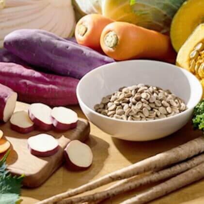 食物繊維を多く含んだ穀物や野菜、質の良いたんぱく質をバランス良く配合しました。