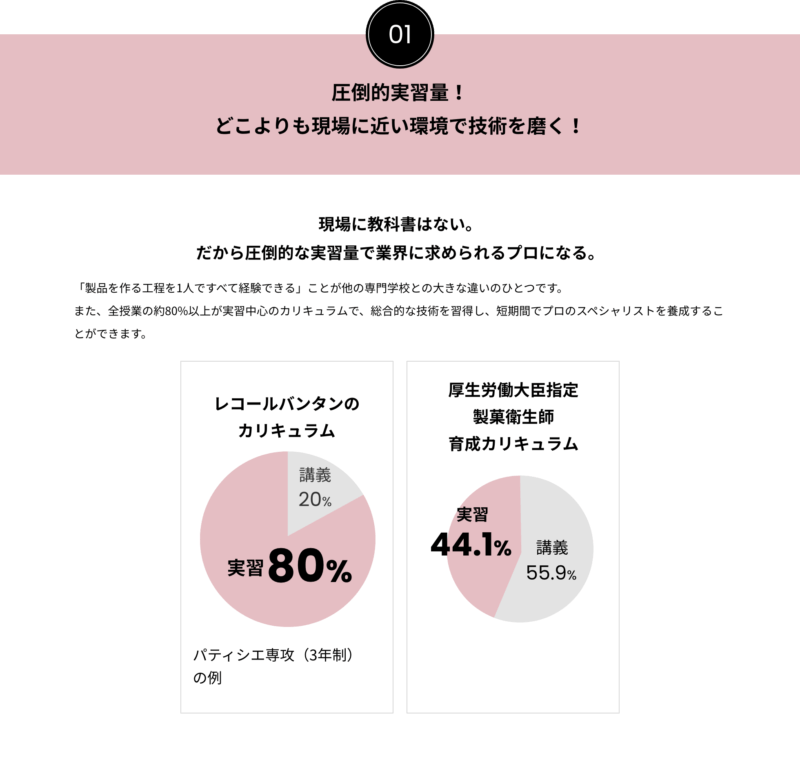 実習が多めで、技術をつけたい人にはピッタリの学校。
