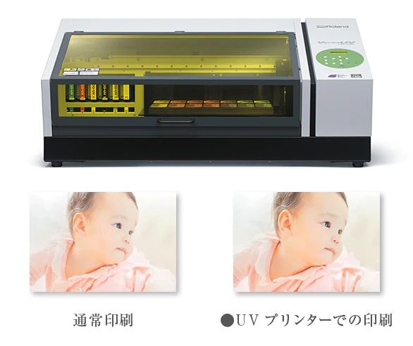通常の印刷とは異なり、インクが素材の表面で硬化して定着するため、色褪せしにくく、長期間その美しさを維持。