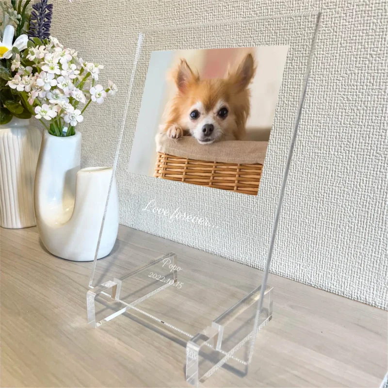 高品質なアクリルパネルを大切なお写真に重ね、インテリア性のあるフォトスタンドにして思い出を鮮やかに残します。