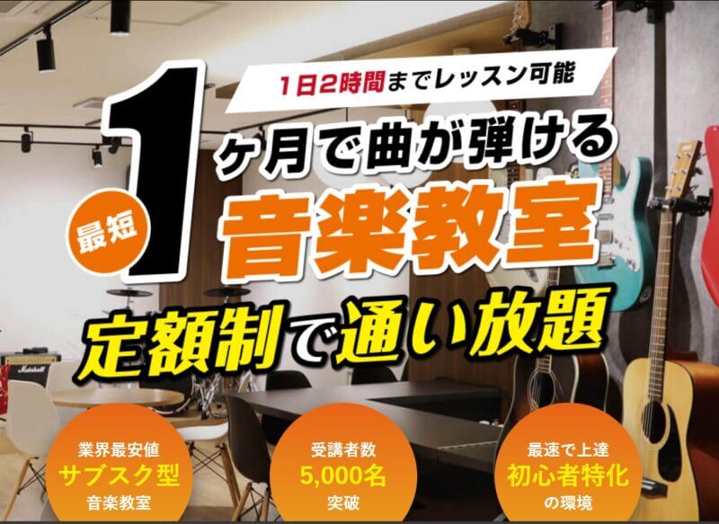 ミュージックスは1レッスン2時間で月に何度でも通学可能。