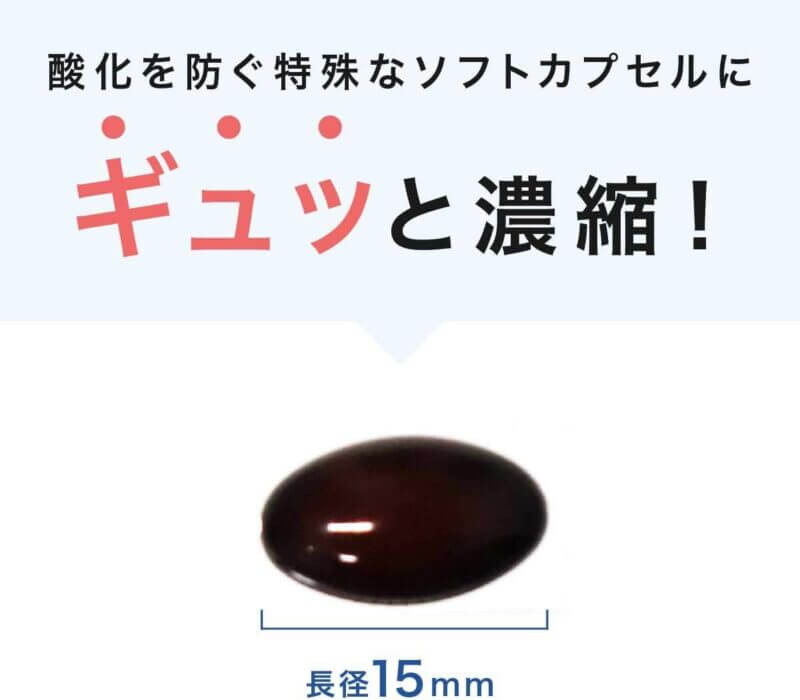 また、カプセルにもこだわり、酸化をから守り、変質を防ぐためにべに花油が充填されており、油分をふくんでも溶けないソフトカプセルが使われています。