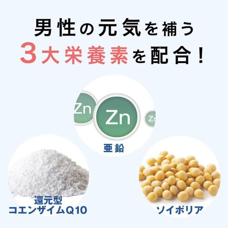 マイシード-亜鉛配合-for Menには、亜鉛の他に、年々不足しがちな還元型コエンザイムQ10や、大豆ソイポリアなどの成分も含んでいます。