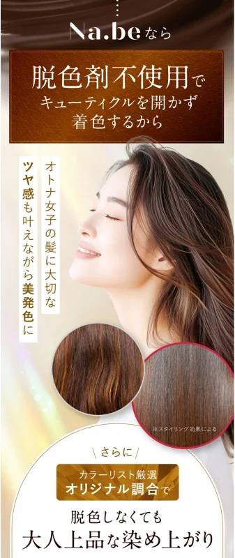 Na.be(ナイブ)カラーシャンプーはキューティクルを開かない独自のカラーリングシステムで着色するシャンプーです。
