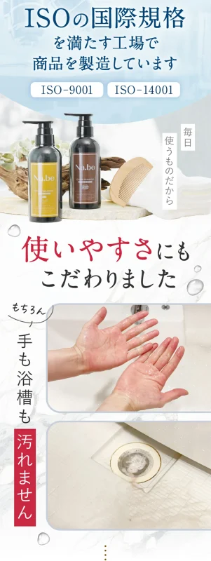 Na.be(ナイブ)カラーシャンプーは手袋などが不要で、素手で使えて浴槽なども汚さないので気軽に毎日使用できます。