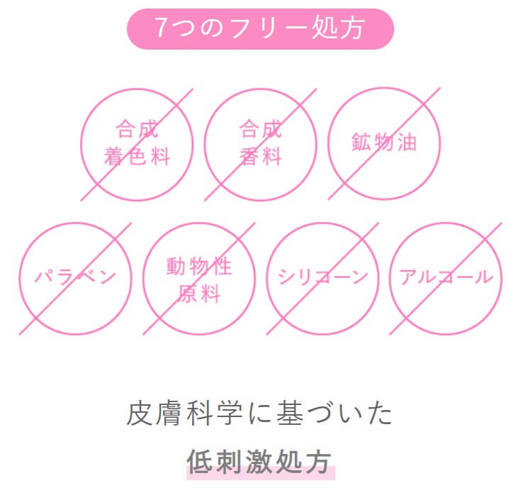 具体的に、合成香料、合成着色料、鉱物油、パラベン、シリコーン、アルコール、動物性原料は不使用となっています。
