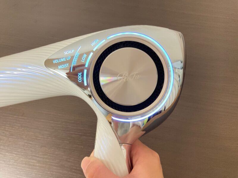 リファビューテック ドライヤープロは自動で温度調節してくれますが、手元にあるボタンでCOOLなどに手動で変更することもできます。