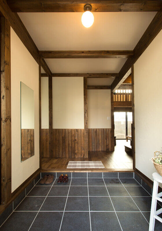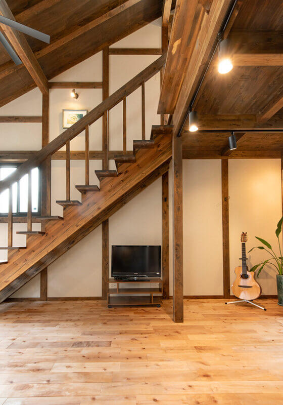 真壁工法を採用し、木の柱や梁を見せることで、昔ながらの趣あるデザインに仕上がります。