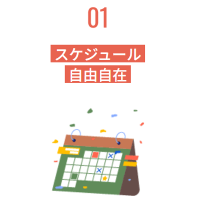 通学する日や学ぶ時間帯を自分の生活スタイルに合わせて自由に設定できるため、忙しい方でも無理なく学習を進められます。