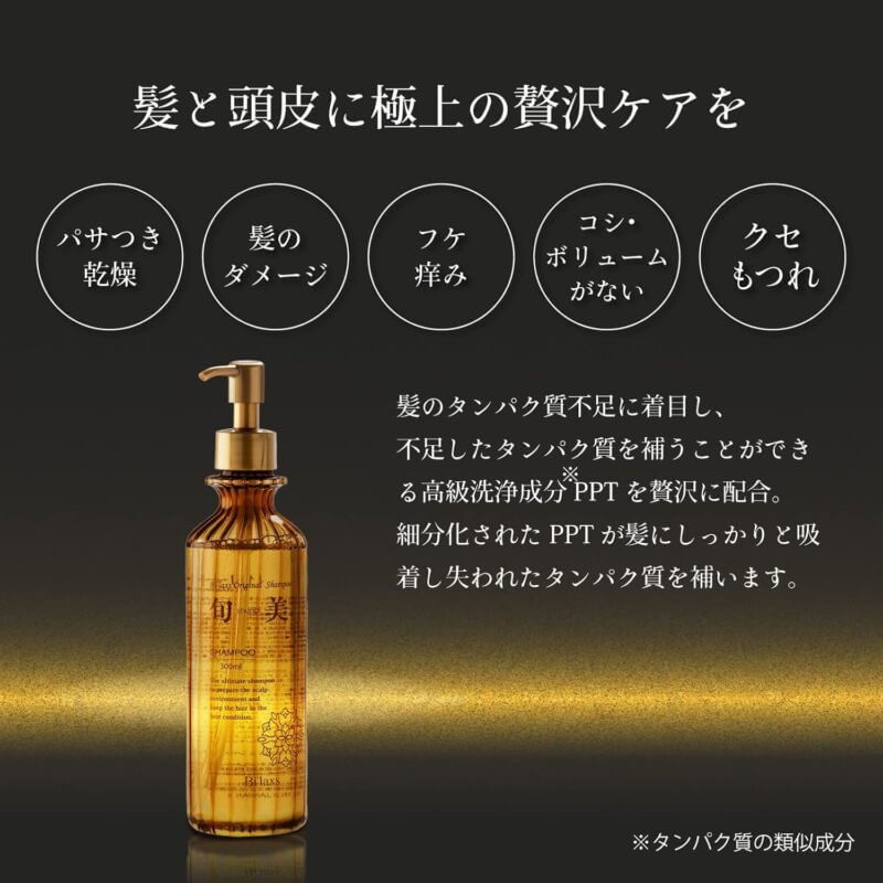 サロン級成分である3種類の高品質PPT(加水分解ケラチン・加水分解シルク・加水分解コラーゲン)を贅潤に配合。
