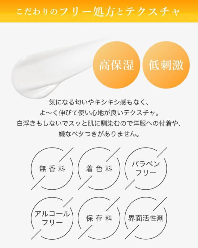 刺激になりうる添加物をカットして、無香料・無着色・パラベンフリー・アルコールフリーのシンプル処方です。